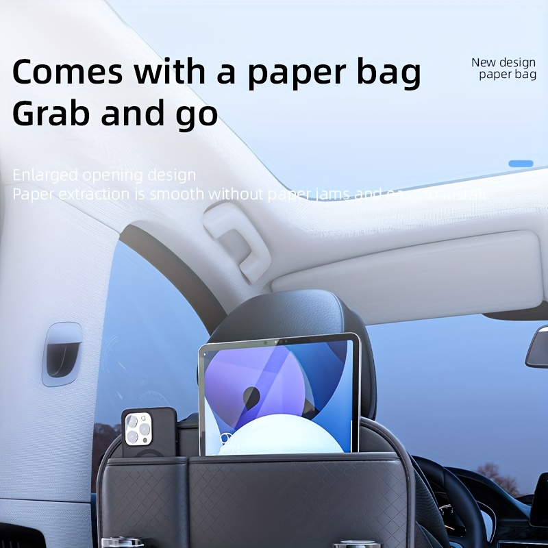 1 Piece Of PU Leather New Car Backrest Storage Bag, Car Seat Backrest Storage Hanging Bag, Rear Shelf Storage Mesh Bag, Universal