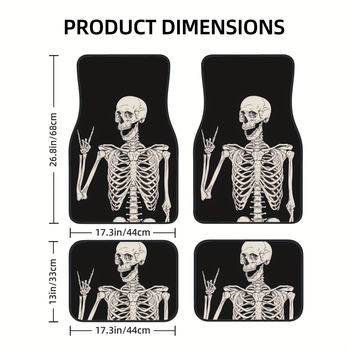 4PCS Set of Waterproof, Easy-Clean, Non-Slip Halloween Skull-Themed Rubber Car Floor Mats for Front & Rear, Universal Fit for All Vehicles