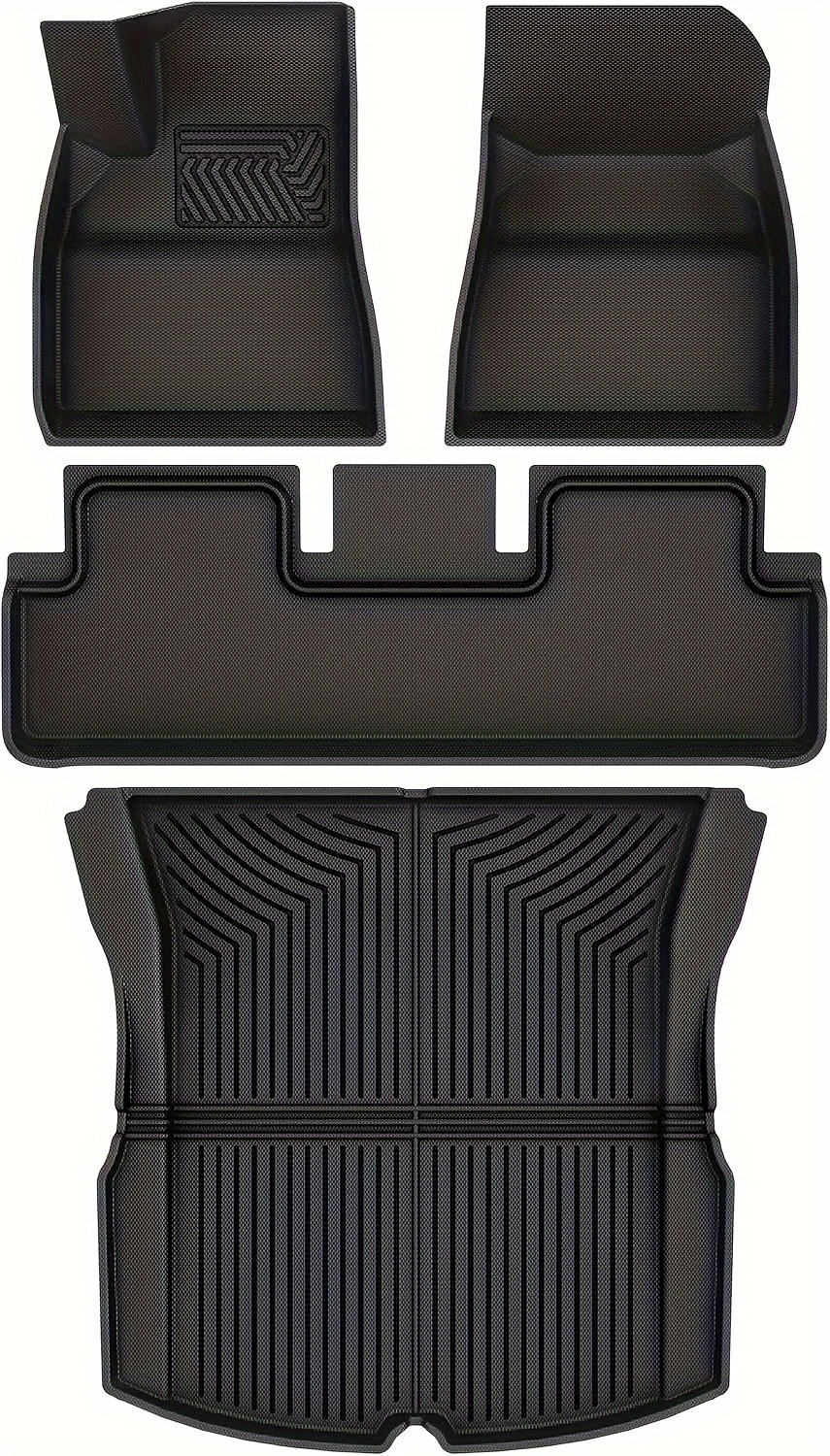 Floor Mats for Tesla Model 3 Highland 2024, All Weather TPR XPE Floor Mats Full Set 1st and 2nd Row, Cargo Liner