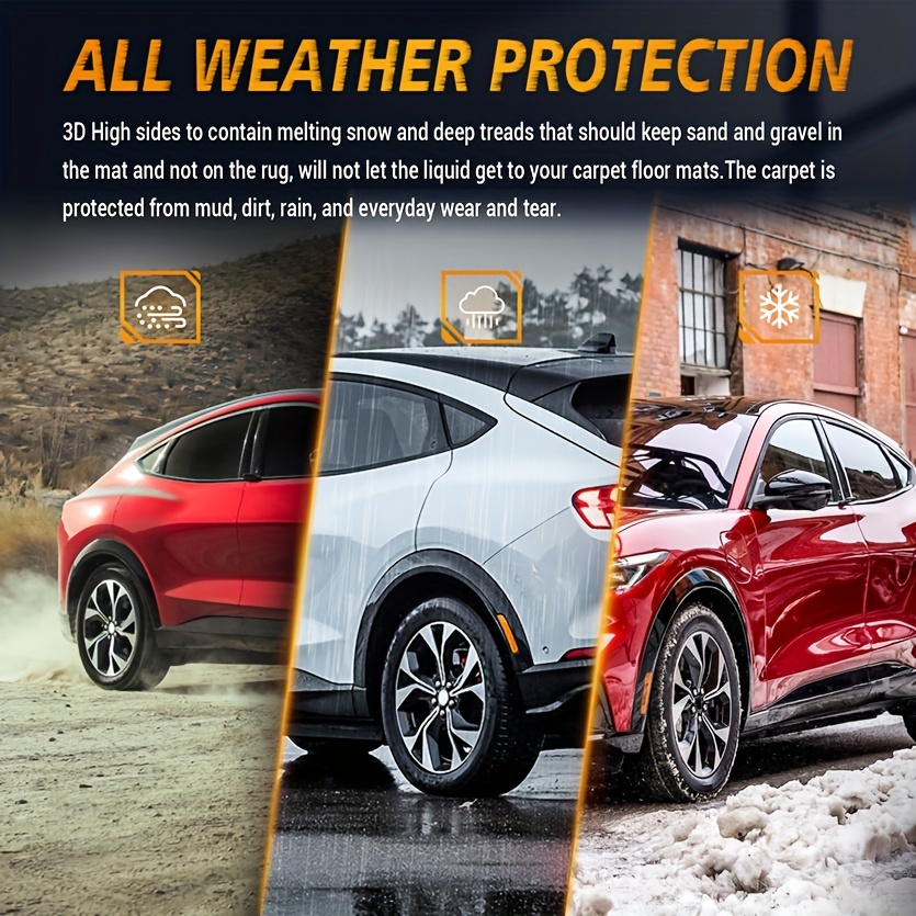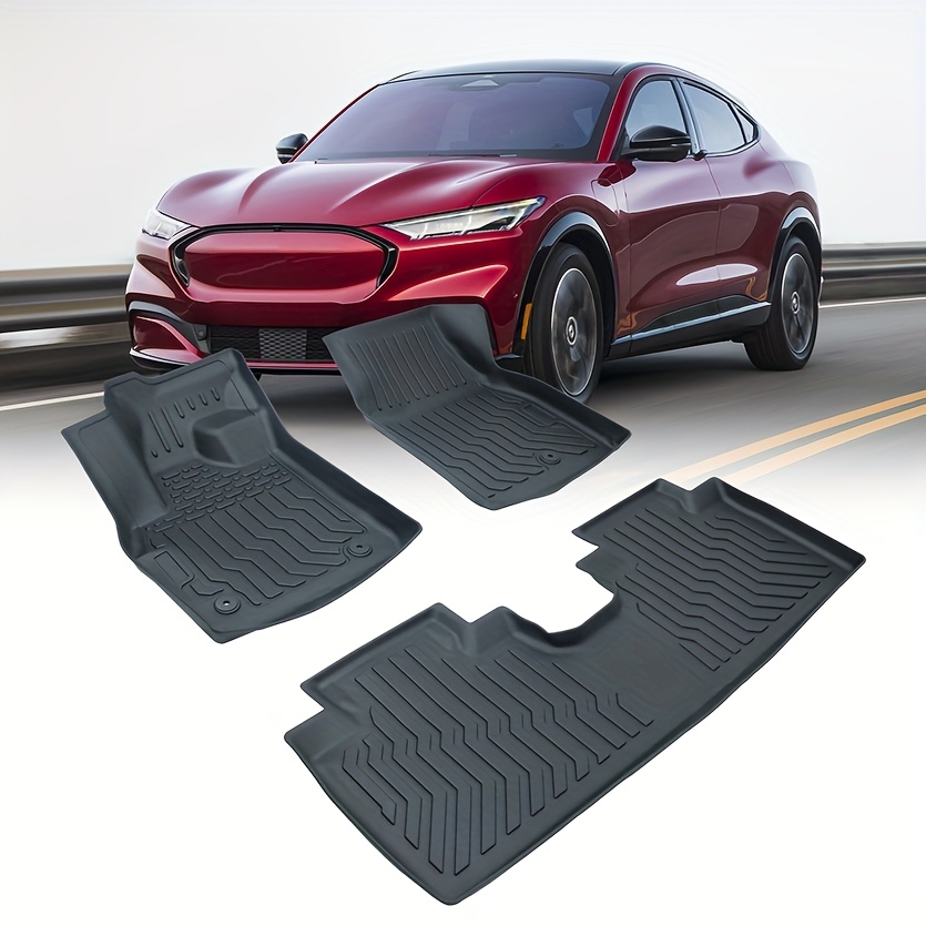 KAIRAY Car Floor Mats All-Weather TPE Rubber Floor Mats Black 4Door For Ford For Mustang Mach-E 2021-2024