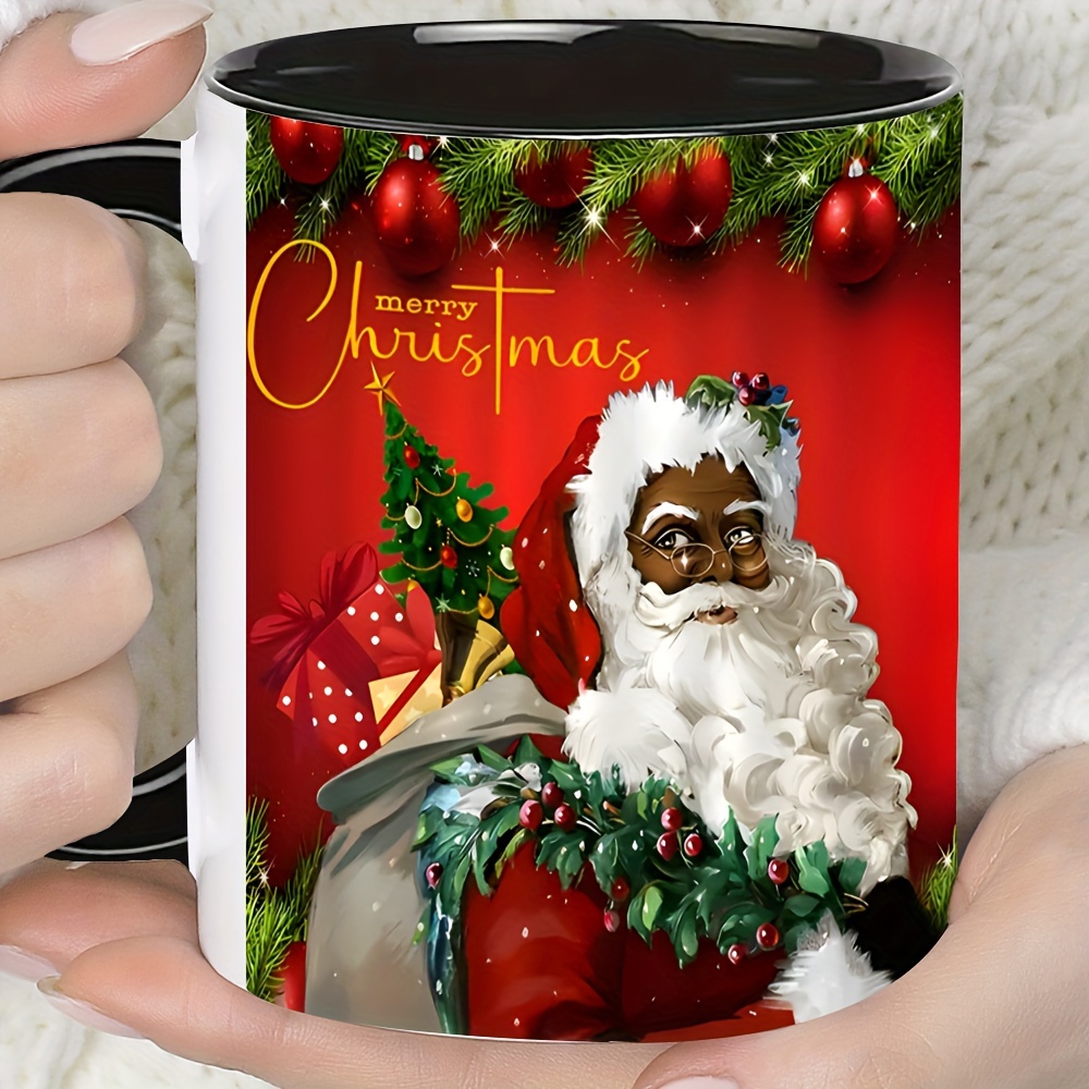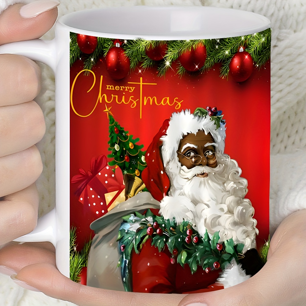 Merry Christmas Ceramic Coffee Mug 11oz - Santa with Gifts Holiday Design, Machine Washable, Reusable, Eco-Friendly Recyclable Material, Ideal for Juice, Milk, Perfect Gift for Family, Friends, Siblings