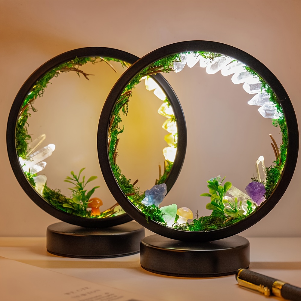 [Natural Crystal Lamp] Natural Crystal Table Lamp - Forest Eco Style Ambient Lamp - Therapeutic Crystal Night Lamp with USB Port and 3 Colours Dimming Patterns for Bedroom Bedside Lamp Office Desk Lamp Home Decor Holiday Gift