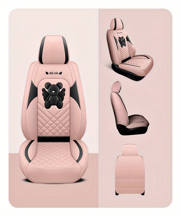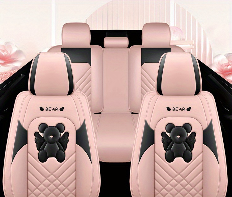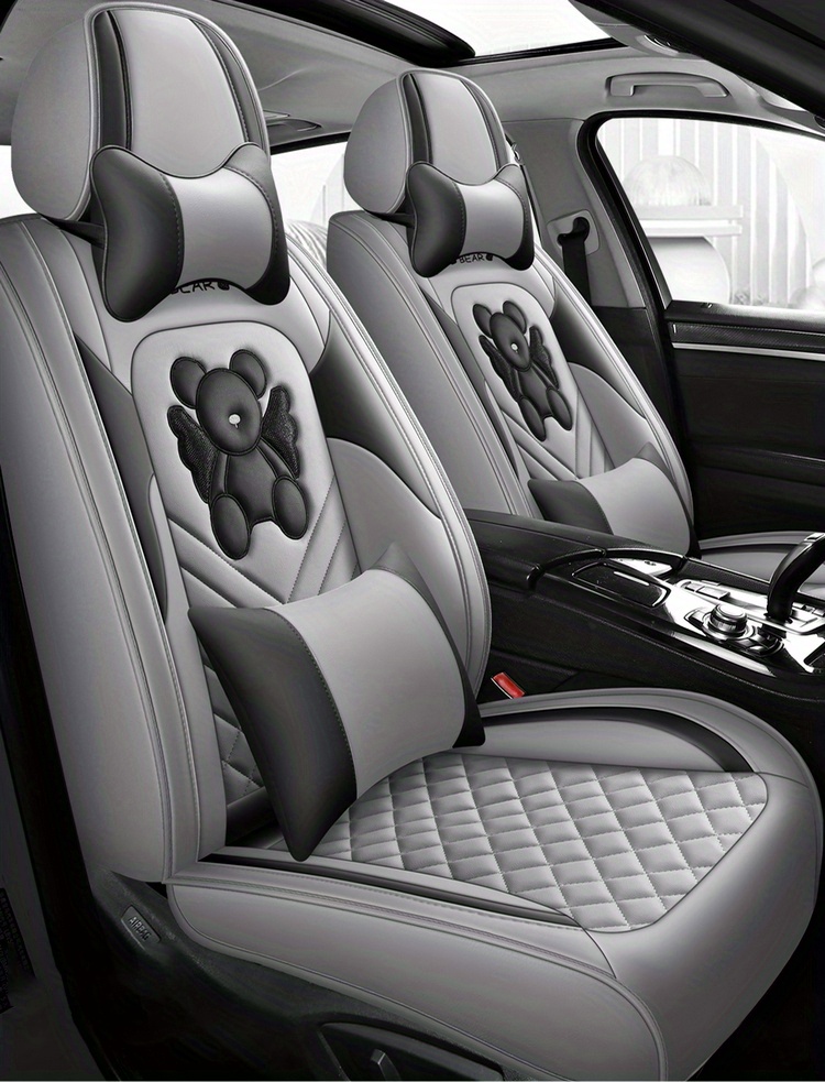 Universal Fit PU Leather Car Seat Covers Set, Cartoon Design, Full Wrap, Non-Washable for Vehicle, All-Season, No Filler - 5 Seats Deluxe Edition